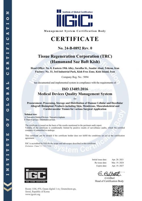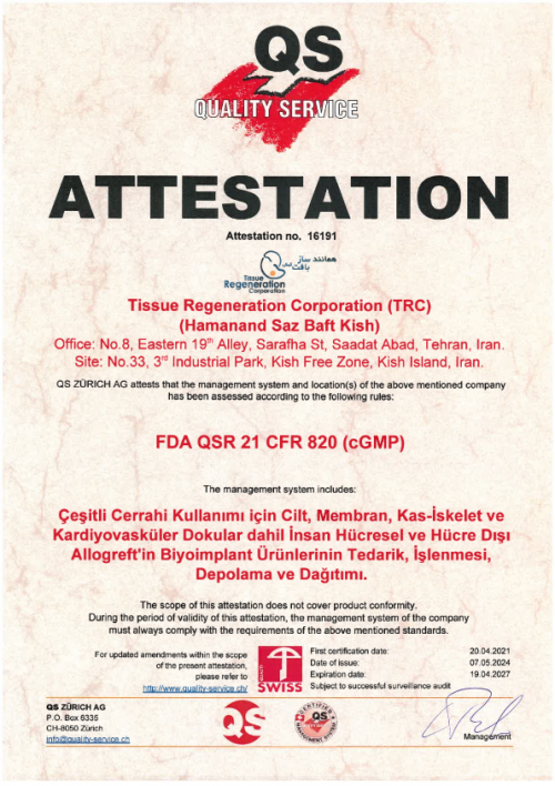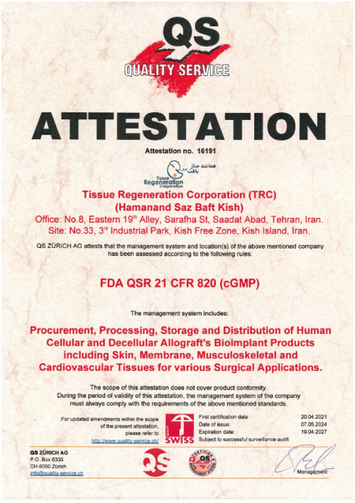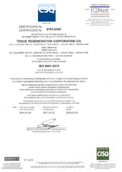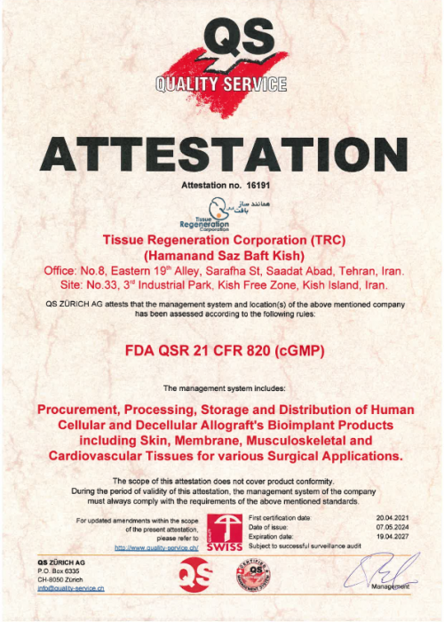 قد تأسست شركة «شركة استنساخ أنسجة كيش» عام 2013 وتصممت أنشطتها وتحديثها سنويا بناء على العلوم والمعرفة الحديثة. الهدف الرئيسي للشركة هو إنتاج منتجات ذات أفضل خصائص الجودة بحيث توفر الأداء الأطول والأكثر ملاءمة للمرضى. يتم إنتاج منتجات الشركة في 4 مجموعات: القلب والأوعية الدموية، والأوتار، والعظام، والأغطية وفقا للمعايير العالمية بما في ذلك EDQM و EuroGTP. تتم عملية إنتاج هذه المنتجات في جزيرة كيش في أرض بمساحة 10ألاف متر مربع و بمساحة 1800 مترمربع في غرف نظيفة من فئة 10إلى 10 آلاف. تم الحصول على شهادات FDA QSR 21 CFR820، ISO13485، ISO 9001، ISO14001 ISO45001 من BSI ثم IMQ إيطاليا، فضلا عن تراخيص الإنتاج والتصدير من المديرية العامة للمعدات الطبية في إيران، وذلك لتأكيد جودة منتجات الشركة. ترحب شركة «شركة استنساخ أنسجة كيش» بأفكار واقتراحات بناءة لإنتاج منتجات بيولوجية باستخدام طريقة هندسة الأنسجة التي يمكن أن تساعد في علاج المرض بشكل أفضل وأسرع.